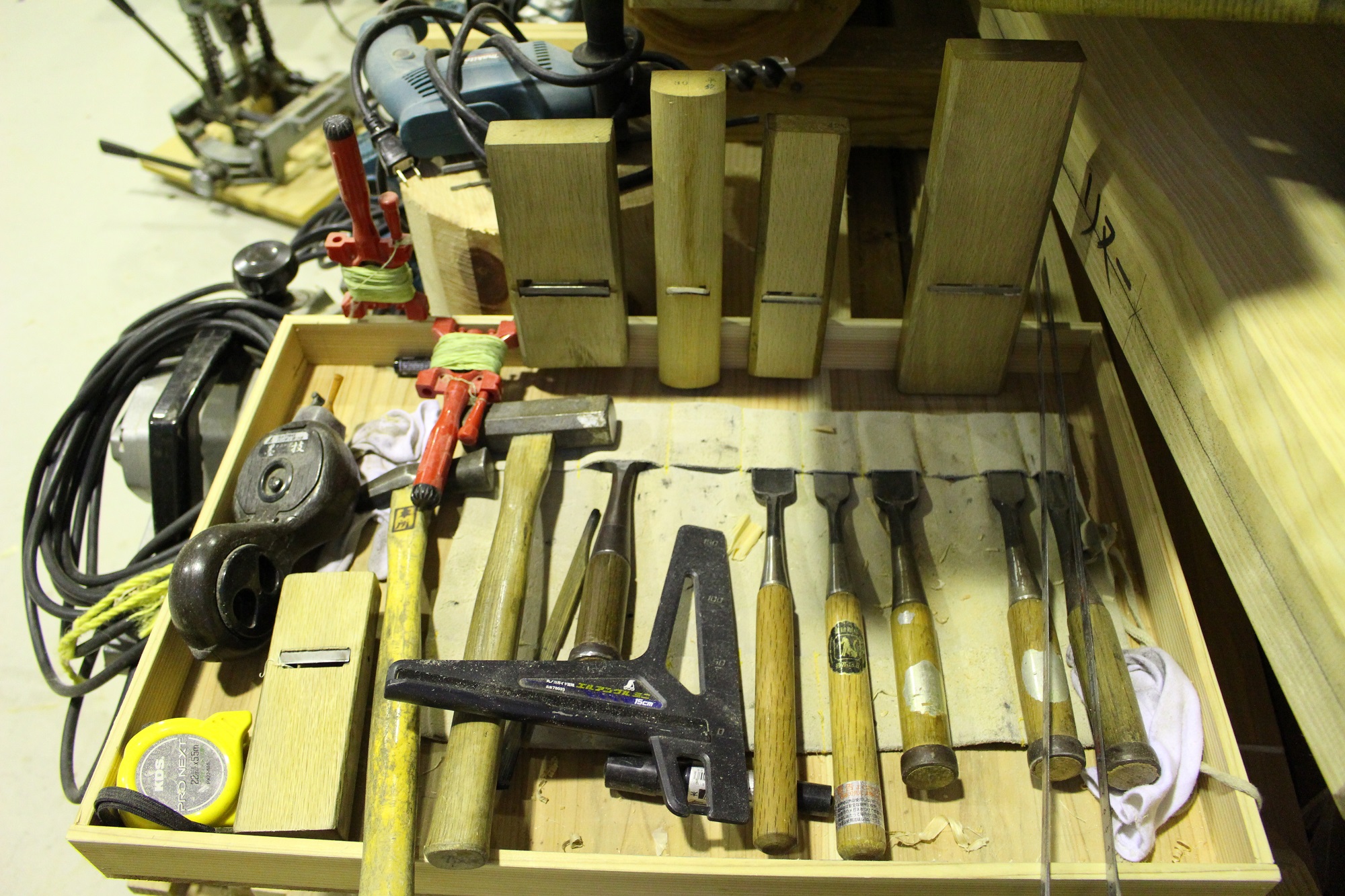 日木材の状態に向き合い、ひとつひとつの木の表情・曲がりや反りを見ながら