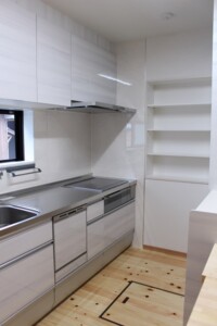 今までの家の使い勝手を見直し、買ったものをすぐに保管できる食品庫も設けました。